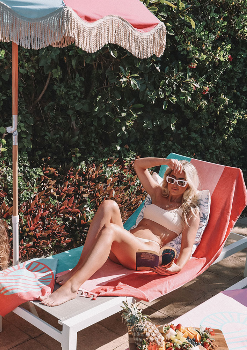 Beach Life Crescent Head Premium Towel- Pink & Blue
