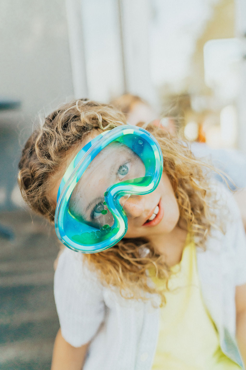 Slow down and stay groovy this summer in Molten Lava! Bling2o has revolutionised the concept of a swim goggle once more by developing this double lens swim mask filling it with a small layer of translucent gel to make that splash even brighter. Lime is latex-free, offers UV protection and includes a hard protective carrying case. For Beach and Pool Play.