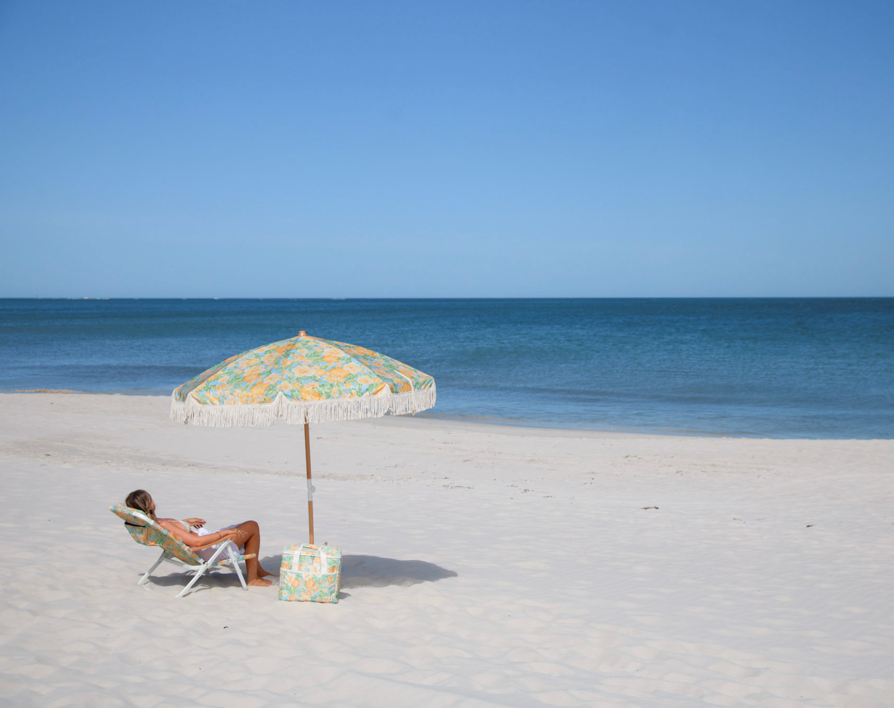 Indulge in the essence of a vintage summer with the Hanalei premium beach umbrella. Adorned in a colour burst of tropical flowers in hues of yellow, green, cream and blue. Hanalei is the ultimate beach accessory designed for warm days by the ocean that transport you to a bygone era of sun-kissed nostalgia and playful beachside joy..
