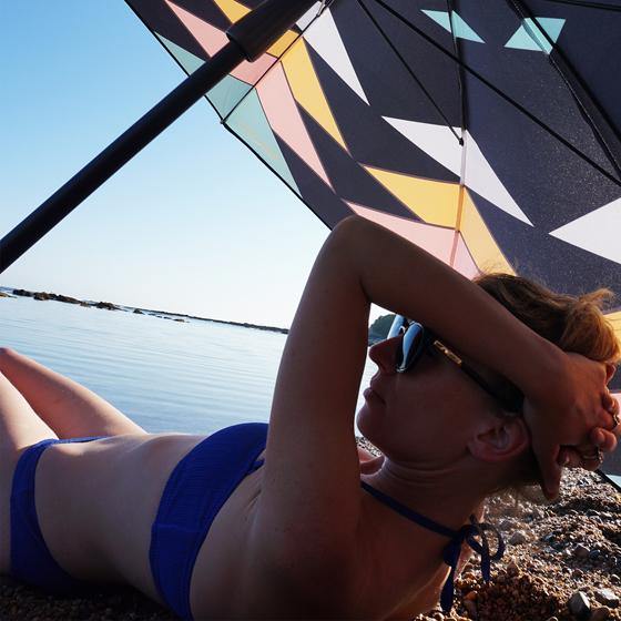 Inspired by the kaleidoscope, this colourful umbrella with a very cool graphic design is like light passing through a prism. Protect yourself from the sun and enjoy the kaleidoscope !
