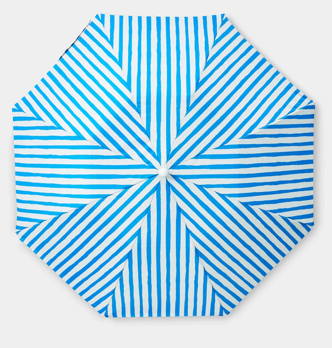 Make a splash this summer with the stylish Ocean Meridien 1.7m Compact Beach Umbrella! In a chic white and royal blue stripe, it’s as trendy as it is practical. Offering UVE95+% protection, this umbrella keeps you safely shaded, with a height-adjustable canopy to maximise coverage all day. Crafted with a lightweight, sturdy aluminium pole, it’s easy to set up and transport—just pop it in the included carry bag with shoulder straps. The anchor kit keeps it steady, even on breezy days, and its fade-resistant fabric ensures vibrant colour all season. Get the Ocean Meridien Umbrella and enjoy sun-soaked days in style!