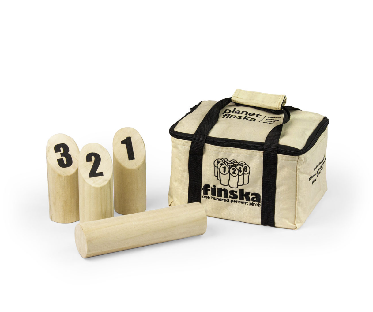 Original Finska is crafted from eco-friendly birch and comes with everything you need to become yet another Finska tragic! Includes durable zip up carry bag, 12 numbered pins, one finska throwing log and laminated rules and scorecard to protect against the elements.