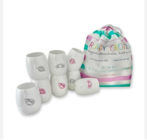 Make beach days brighter (and arguments over whose wine is whose a thing of the past) with this 8-pack of printed, unbreakable wine tumblers. Each cup features its own unique mix of pink, silver, navy, and fun coastal icons — think crabs, fish, shells, prawns — so everyone knows exactly which drink is theirs.