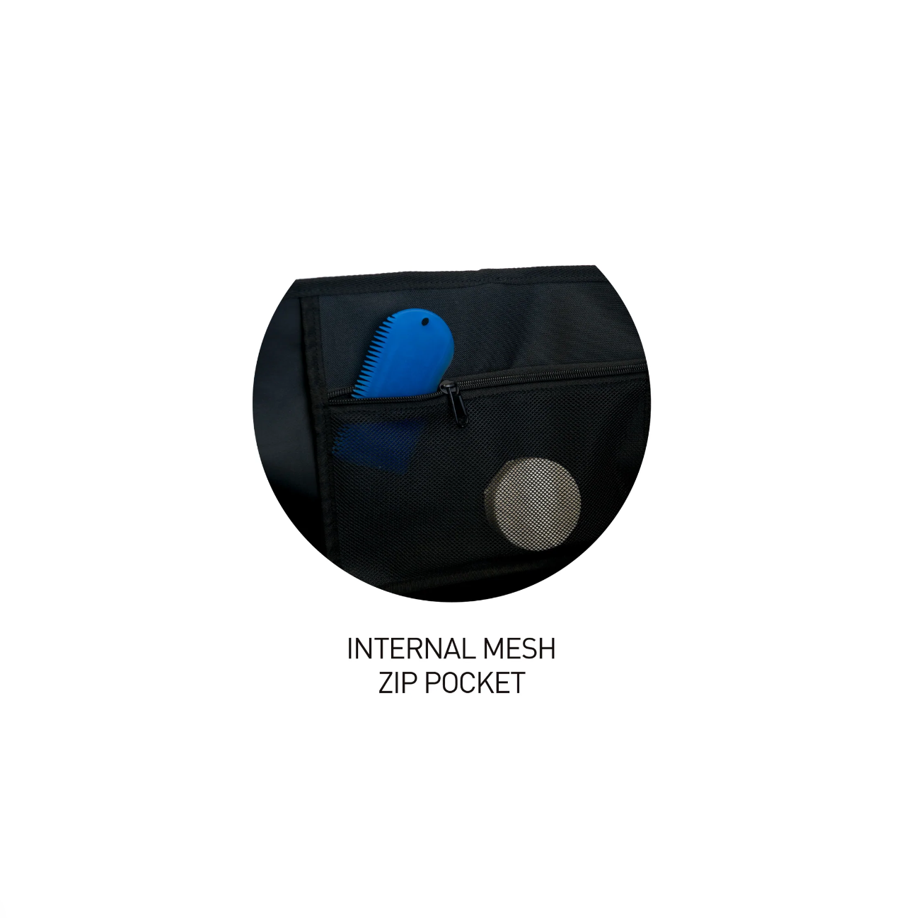 In addition, for your smaller bit of kit, keys, surf wax, etc, there is also a zippered mesh storage pocket inside to help keep things from getting lost in the mix. We totally love this waterproof beach bag because it makes it so simple and easy to keep your personal gear organised, get your wet surf gear home from the beach, and keep the car clean and dry, all at the same time.